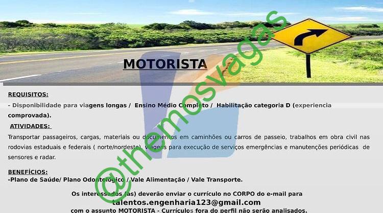– Interessados(as) e que atendam ao perfil solicitado acima, devem enviar o currículo para o e-mail talentos.engenharia123@gmail.com, contendo no título/assunto “Motorista – FOR”.