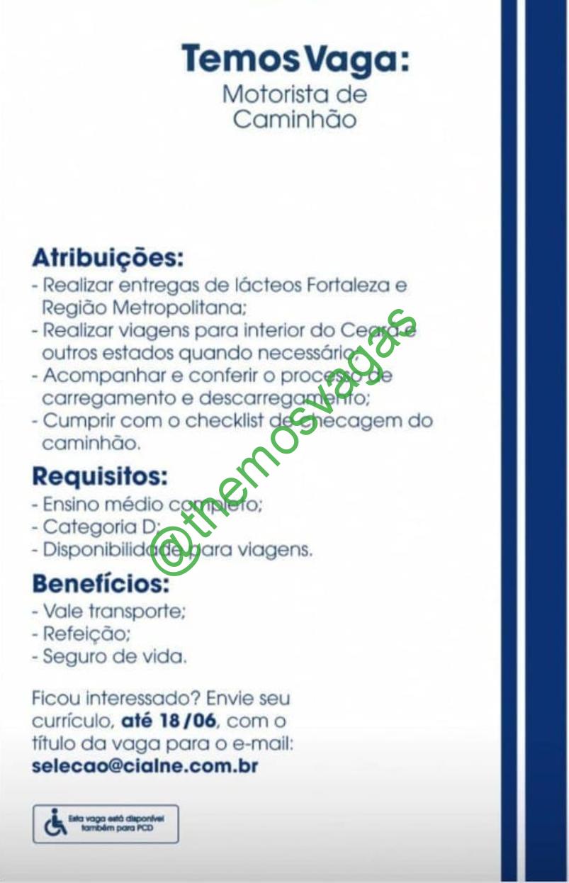 Motorista de Caminhão | Fortaleza – CE | 01 vaga(s)