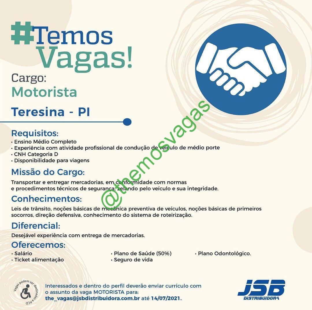 – Interessados(as) e que atendam ao perfil solicitado acima, devem enviar o currículo até 14/07/2021 para o e-mail the_vagas@jsbdistribuidora.com.br , contendo no título/assunto “Motorista“.