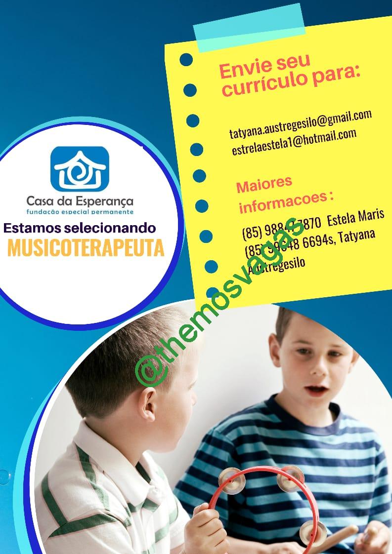 – Interessados(as) e que atendam ao perfil solicitado acima, devem enviar o currículo para o e-mail tatyana.austregesilo@gmail.com e estrelaestela1@gmail.com , colocando no título “Musicoterapeuta”.