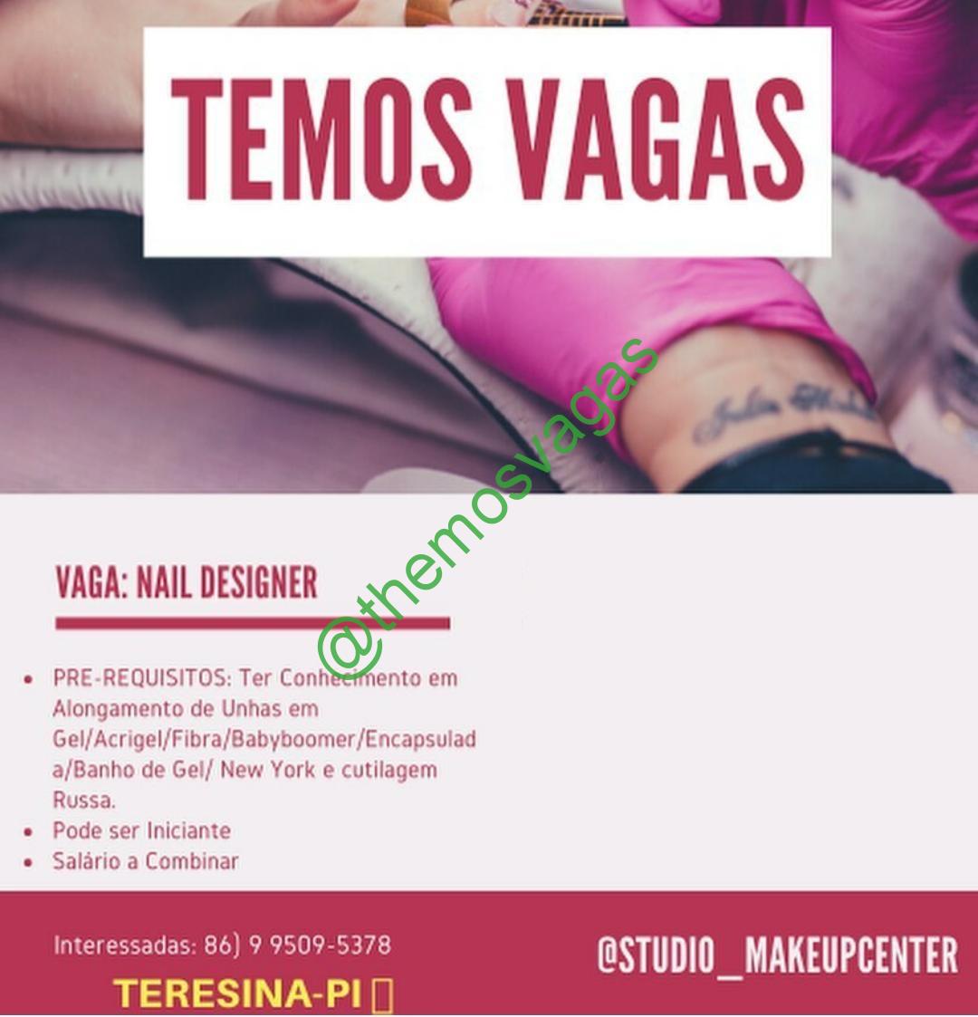– Interessados(as) e que atendam ao perfil solicitado acima, devem enviar o currículo através do telefone/whats 86 995095378 , informando que deseja concorrer à vaga de “Nail Designer“.