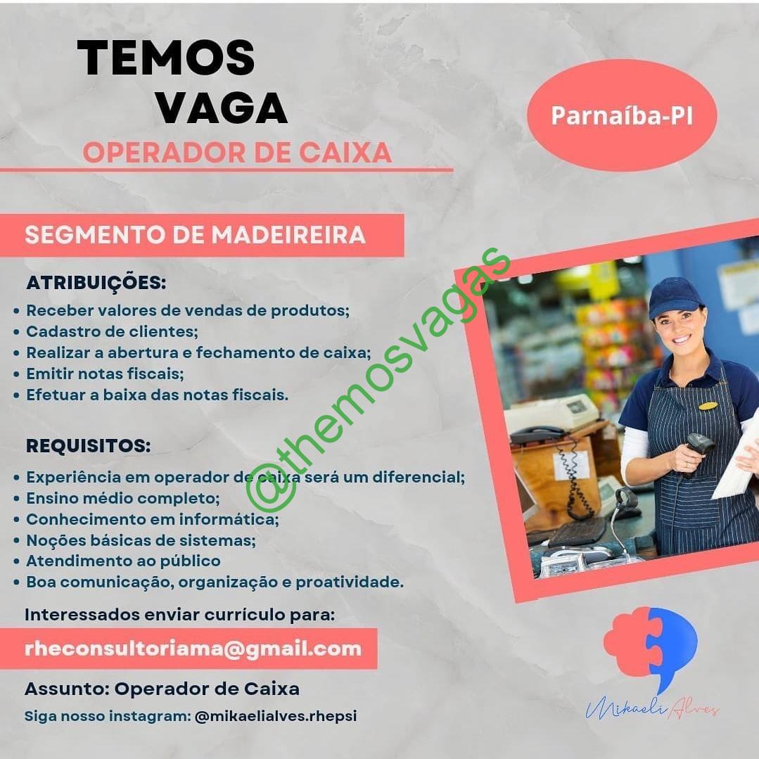 Operador de Caixa | Parnaíba – PI | 01 vaga(s)