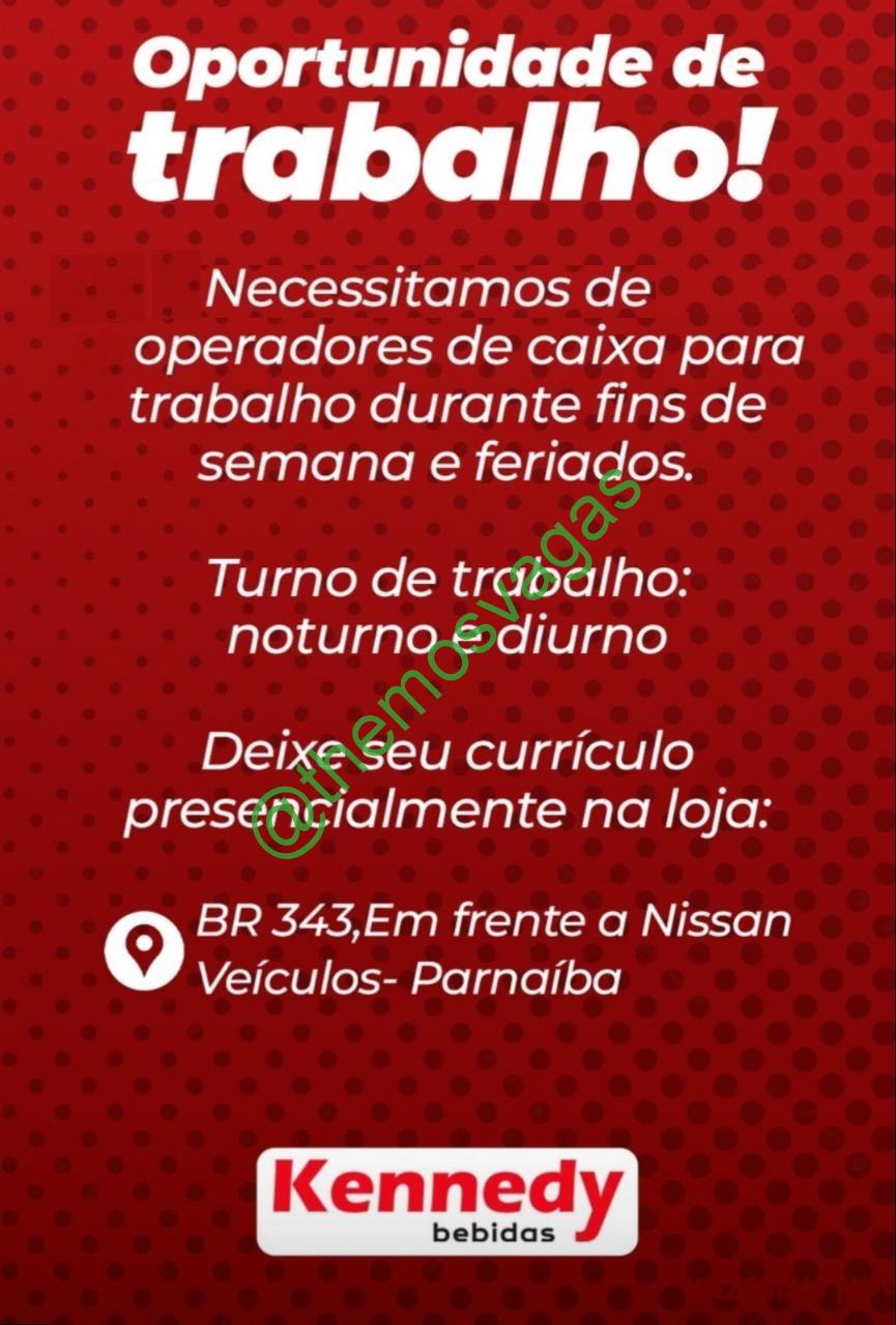 – Interessados(as) e que atendam ao perfil solicitado acima, devem entregar o currículo no seguinte endereço: BR 343, em frente a Nissan Veículos – Parnaíba/PI – Kennedy Bebidas.