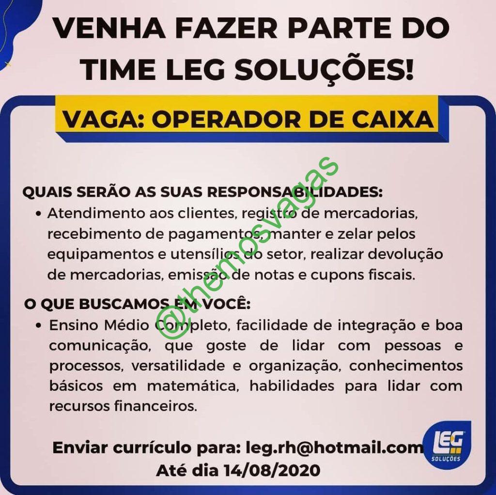 – Interessados(as) e que atendam ao perfil solicitado acima, devem enviar o currículo até 14/08/2020 para o e-mail leg.rh@hotmail.com contendo no título/assunto “Operador de Caixa THE