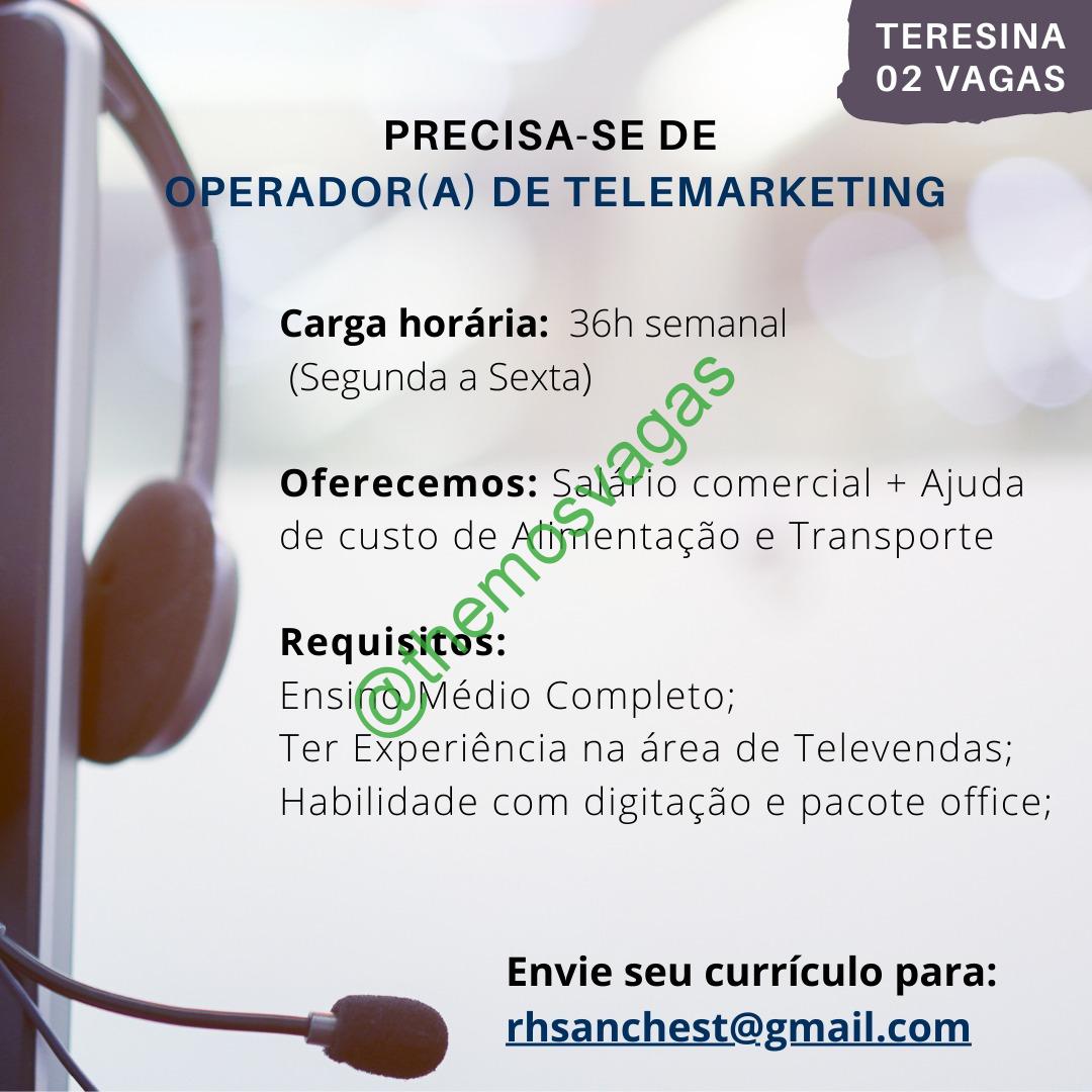 Operador de Telemarketing | Teresina – PI | 02 vaga(s)