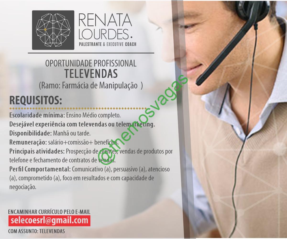 – Interessados(as) e que atendam ao perfil solicitado acima, devem enviar o currículo para o e-mail selecoesrl@gmail.com contendo no título/assunto “ Televendas”.