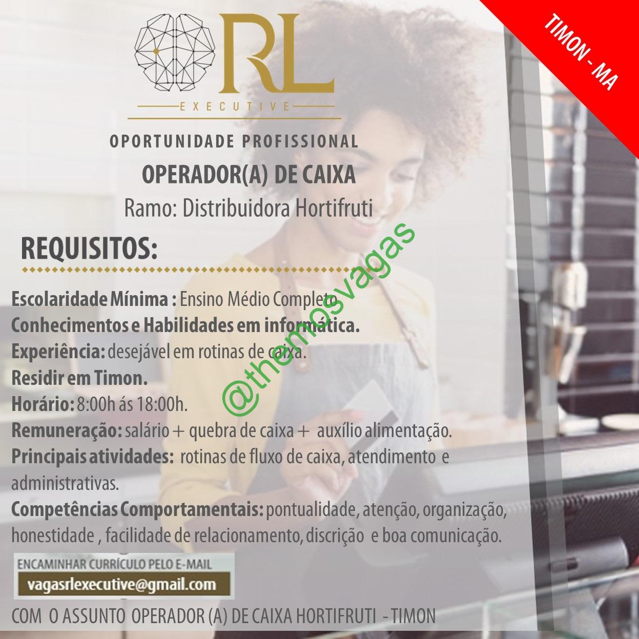 – Interessados(as) e que atendam ao perfil solicitado acima, devem enviar o currículo para o e-mail vagasrlexecutive@gmail.com contendo no título/assunto “Operador(a) de Caixa Hortifruiti – Timon