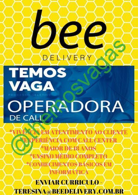 – Interessados(as) e que atendam ao perfil solicitado acima, devem enviar o currículo para o e-mail teresina@beedelivery.com.br contendo no título/assunto “Operadora de Call Center“.
