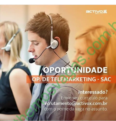 – Interessados(as) e que atendam ao perfil solicitado acima, devem enviar o currículo para o e-mail recrutamento@activoc.com.br , colocando no título “Operador(a) de Telemarketing”.