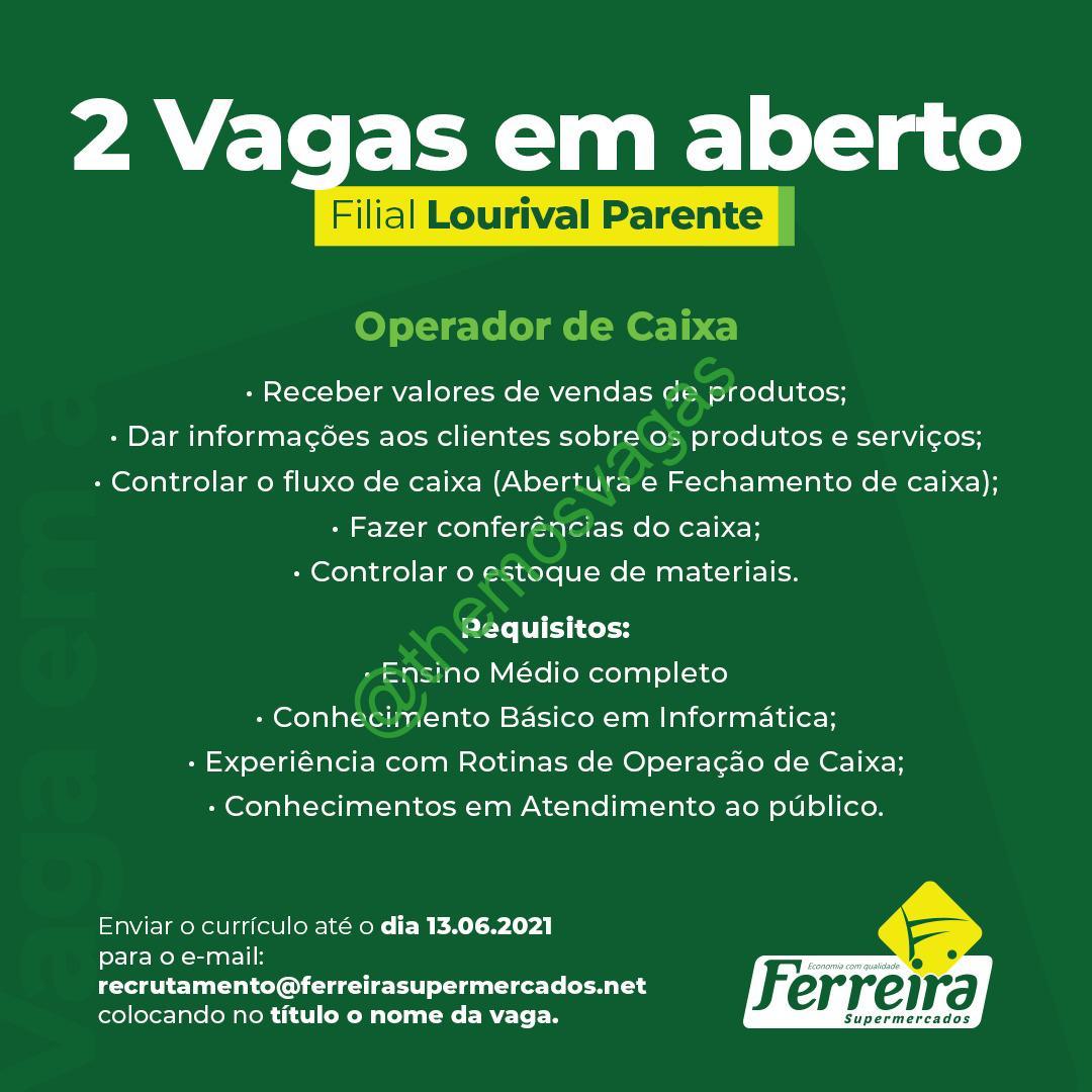 – Interessados(as) e que atendam ao perfil solicitado acima, devem enviar o currículo até 13/06/2021  para o e-mail recrutamento@ferreirasupermercados.net contendo no título/assunto “Operdador de Caixa THE