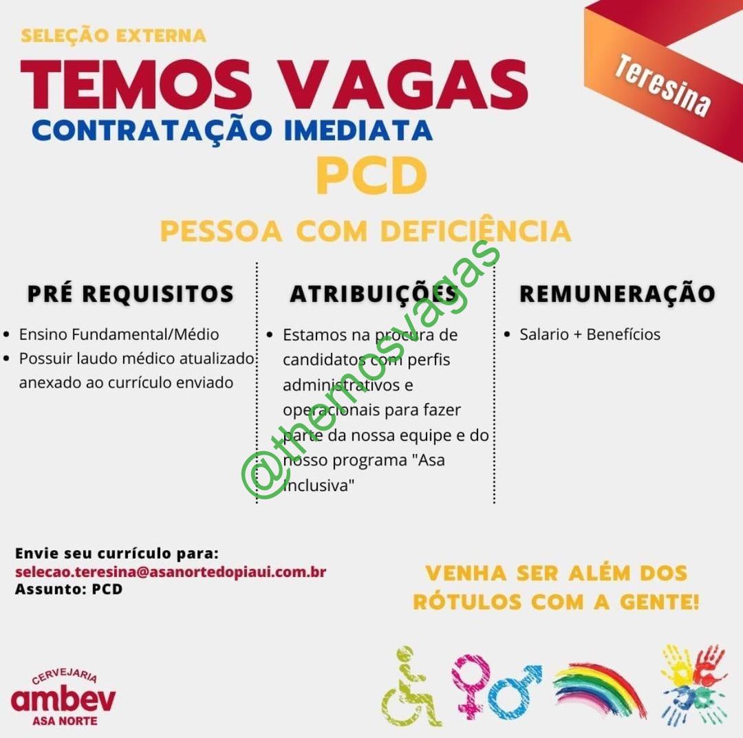 – Interessados(as) e que atendam ao perfil solicitado acima, devem enviar o currículo para o e-mail selecao.teresina@asanortedopiaui.com.br contendo no título/assunto “PCD“.