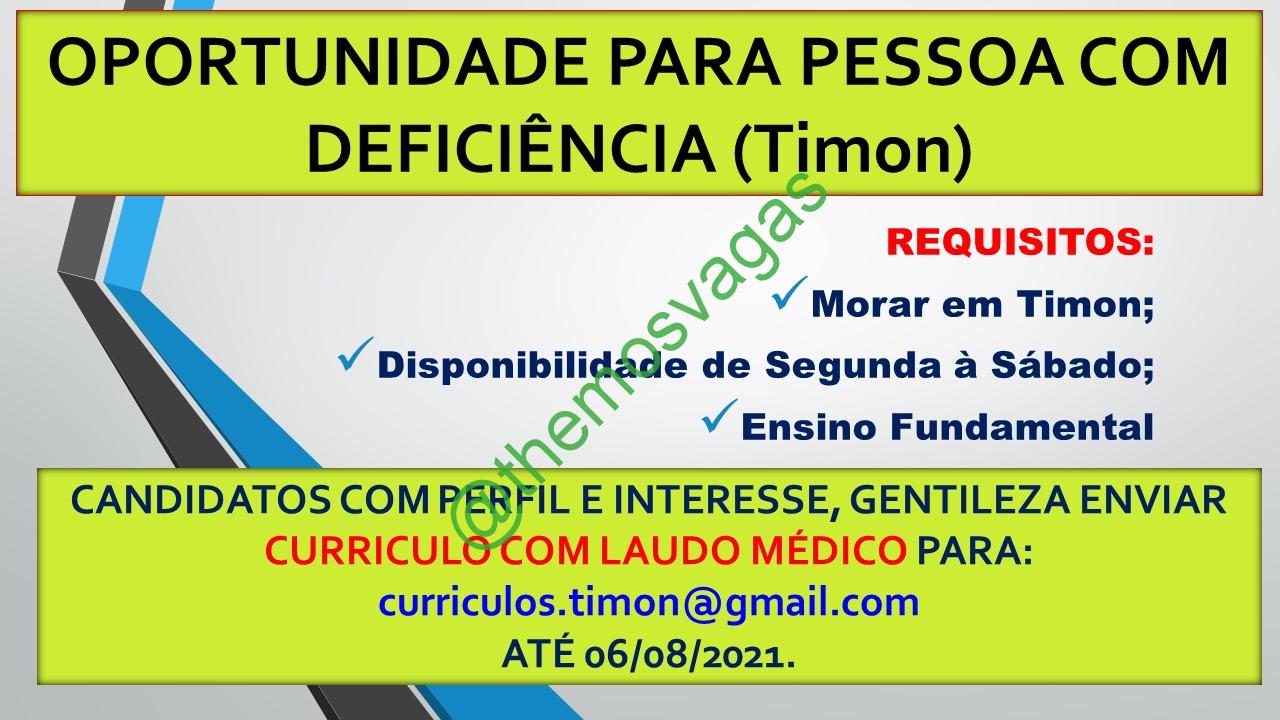 Pessoa com Deficiência | Timon – MA | 01 vaga(s)