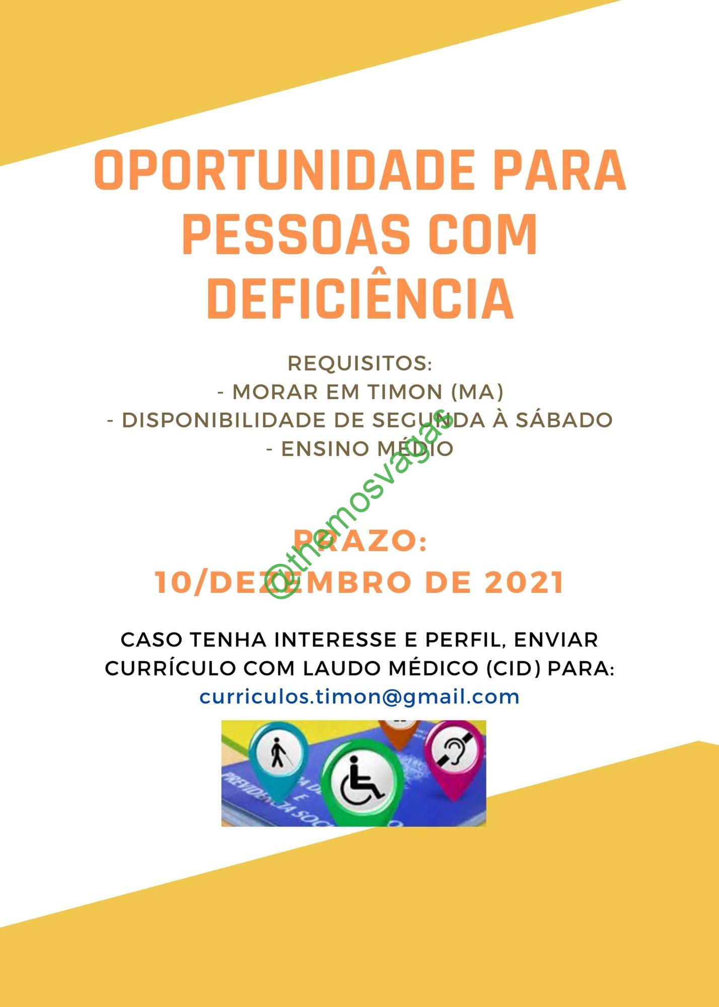 Pessoa com Deficiência | Timon – MA | 01 vaga(s)