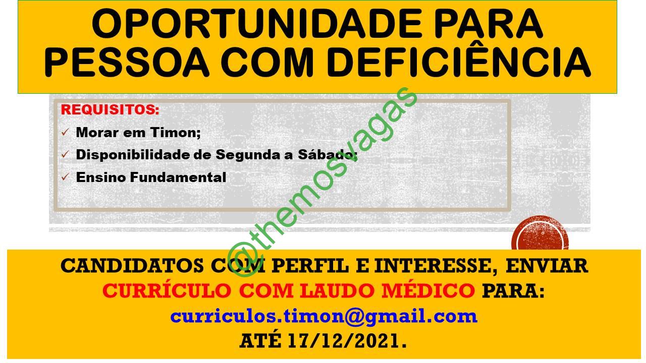 Pessoa com Deficiência | Timon – MA | 01 vaga(s)