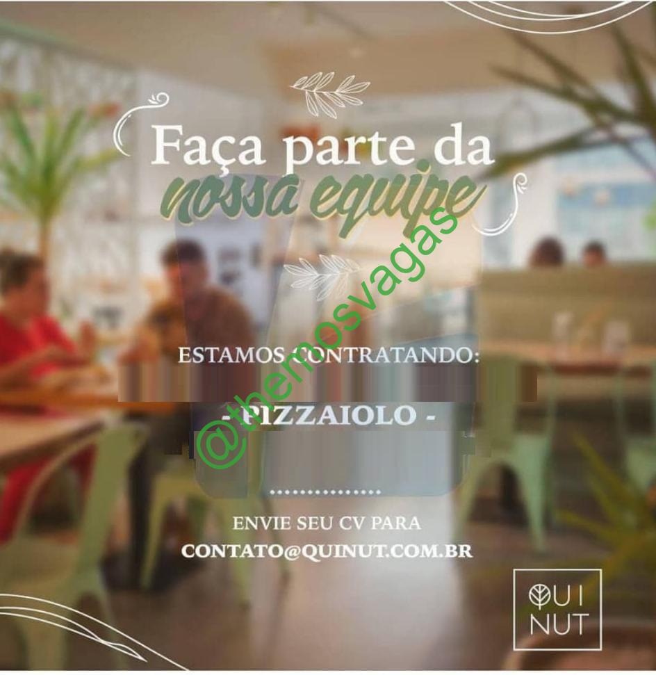 – Interessados(as) e que atendam ao perfil solicitado acima, devem enviar o currículo para o e-mail contato@quinut.com.br, contendo no titulo/assunto “Pizzaiolo – FOR”.