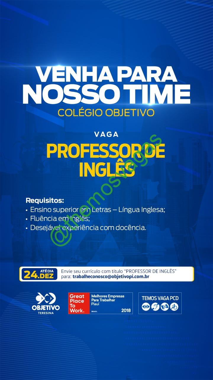 – Interessados(as) e que atendam ao perfil solicitado acima, devem enviar o currículo até 24/12/2021 para o e-mail trabalheconosco@objetivopi.com.br, contendo no título/assunto “Professor de Inglês“.