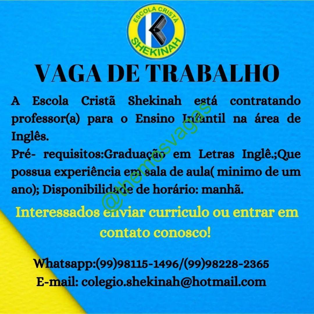 – Interessados(as) e que atendam ao perfil solicitado acima, devem enviar o currículo para o e-mail colegio.shekinah@hotmail.com contendo no título/assunto “Professor de Inglês