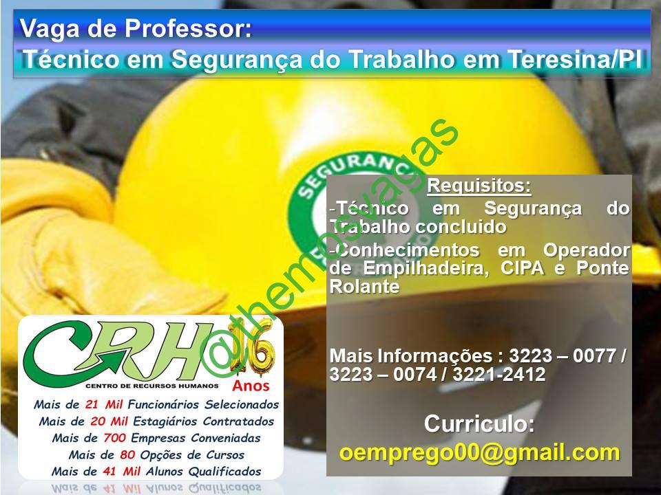 Professor de Técnico em Segurança do Trabalho / 01 vaga(s) / Teresina – PI