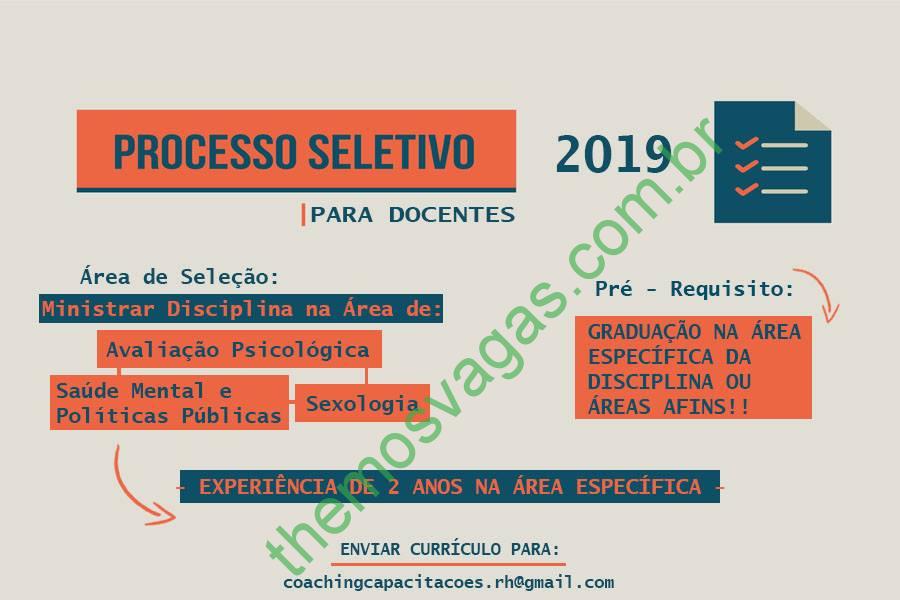 Interessados(as) e que atendam aos requisitos devem enviar o perfil profissional para o e-mail: coachingcapacitacoes.rh@gmail.com