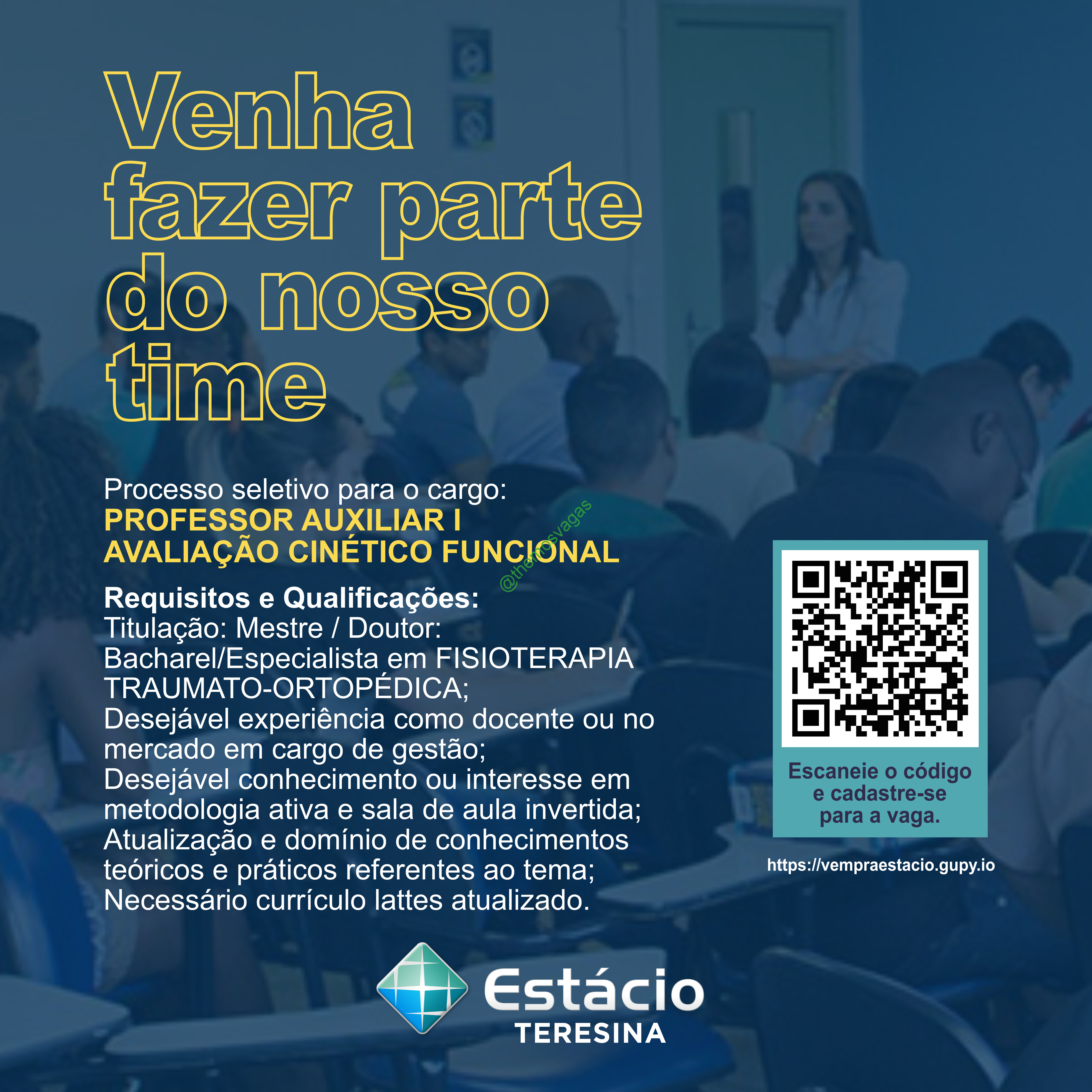 Professor(a) de Fisioterapia | Teresina – PI | 01 vaga(s)