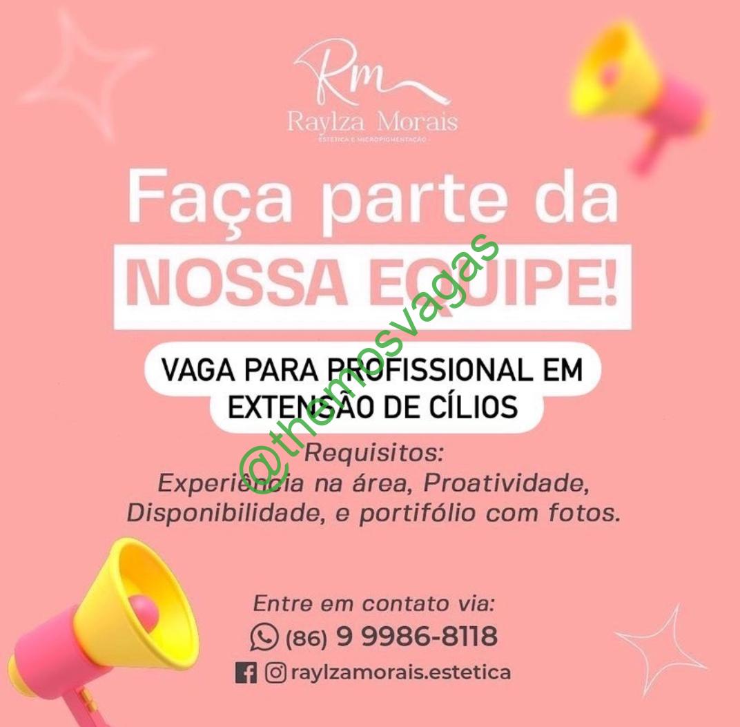 – Interessados(as) e que atendam ao perfil solicitado acima, devem enviar o currículo e portfólio através do whatsapp 86 9986-8118 informando que pretende concorrer para a vaga de “Profissional em Extensão de Cílios“.