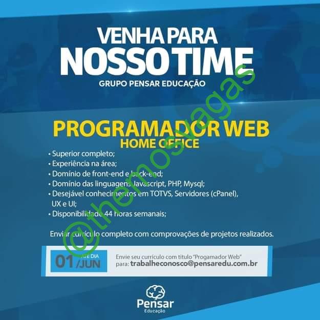 – Interessados(as) e que atendam ao perfil solicitado acima, devem enviar o currículo até 01/06/2020 para o e-mail trabalheconosco@pensaredu.com.br contendo no título/assunto “Programador Web THE