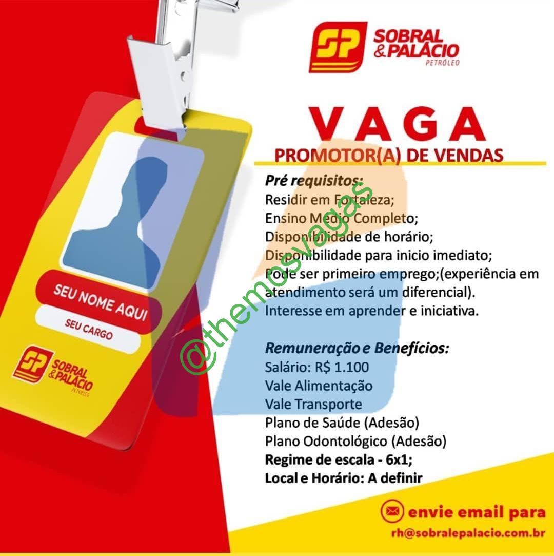 – Interessados(as) e que atendam ao perfil solicitado acima, devem enviar o currículo para o e-mail rh@sobralepalacio.com.br, contendo no título/assunto “Promotor de Vendas – FOR“.