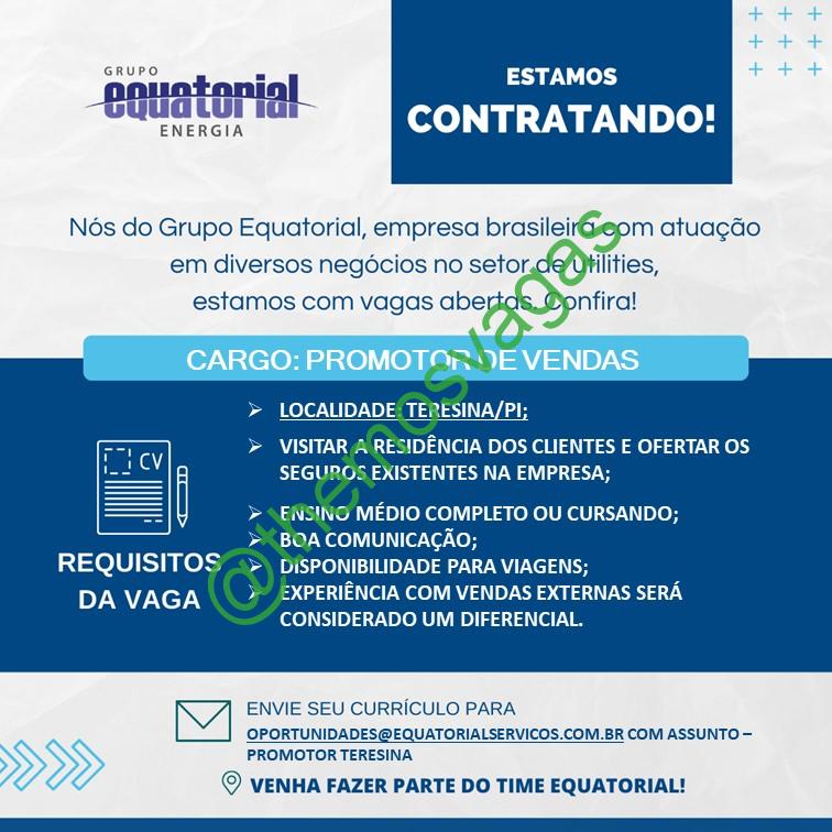 – Interessados(as) e que atendam ao perfil solicitado acima, devem enviar o currículo para o e-mail oportunidades@equatorialservicos.com.br contendo no título/assunto “Promotor Teresina ”.