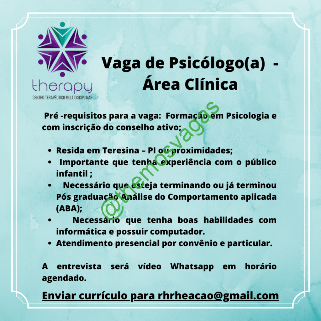 Psicólogo(a) | Teresina – PI | 01 vaga(s)