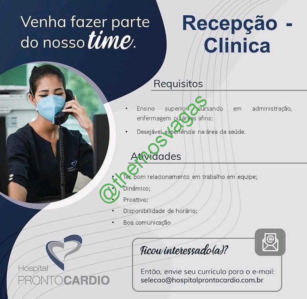 –  Interessados(as) e que atendam ao perfil solicitado acima, devem enviar o currículo para o e-mail selecao@hospitalprontocardio.com.br, contendo no titulo/assunto “Recepção FOR”.