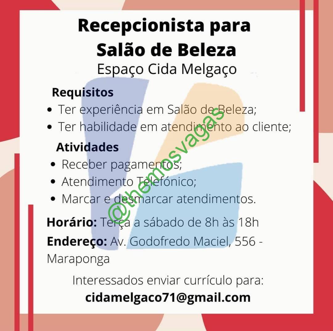 – Interessados(as) e que atendam ao perfil solicitado acima, devem enviar o currículo para o e-mail cidamelgaco71@gmail.com, contendo no título/assunto “Recepcionista – FOR“.