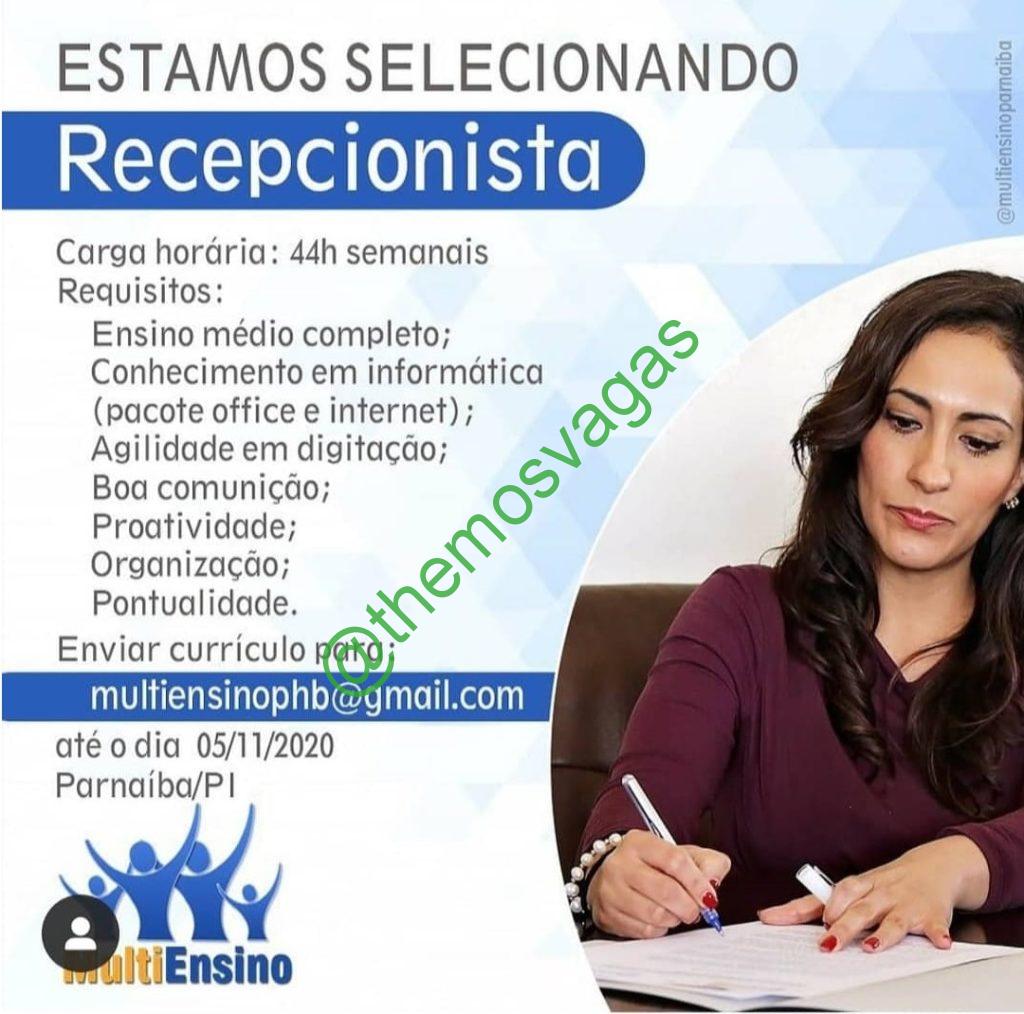 – Interessados(as) e que atendam ao perfil solicitado acima, devem enviar o currículo até 05/11/2020 para o e-mail multiensinophb@gmail.com contendo no título/assunto “Recepcionista – Parnaíba