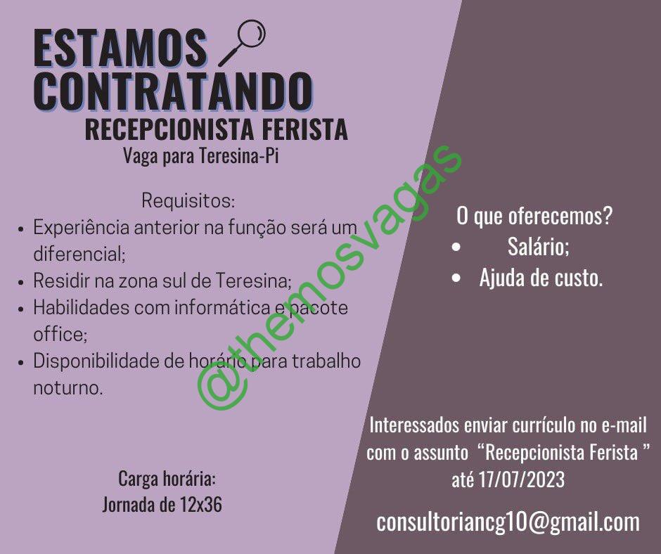 Recepcionista Ferista | Teresina – PI | 01 vaga(s)