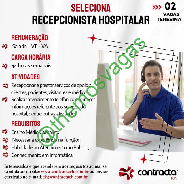 Recepcionista Hospitalar | Teresina – PI | 02 vaga(s)