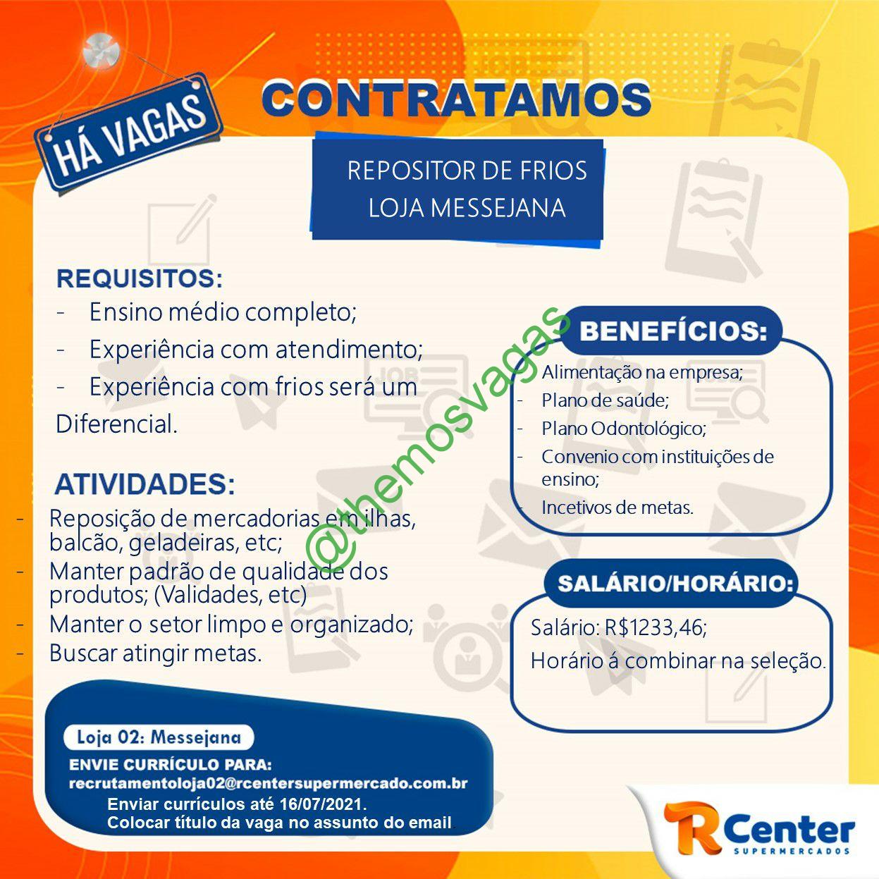 – Interessados(as) e que atendam ao perfil solicitado acima, devem enviar o currículo até 16|07|2021 para o e-mail recrutamentoloja02@rcentersupermercado.com.br, contendo no titulo/assunto “Repositor de Frios – FOR”