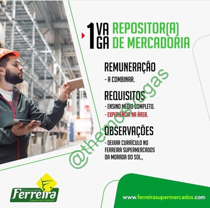 – Interessados(as) e que atendam ao perfil solicitado acima, devem entregar o currículo até o dia 20/09/2019 exclusivamente no Supermercado Ferreira do Bairro Morada do Sol: Rua Orlando Carvalho, 4130 . Mais informações pelo telefone (86) 3215-5023 .