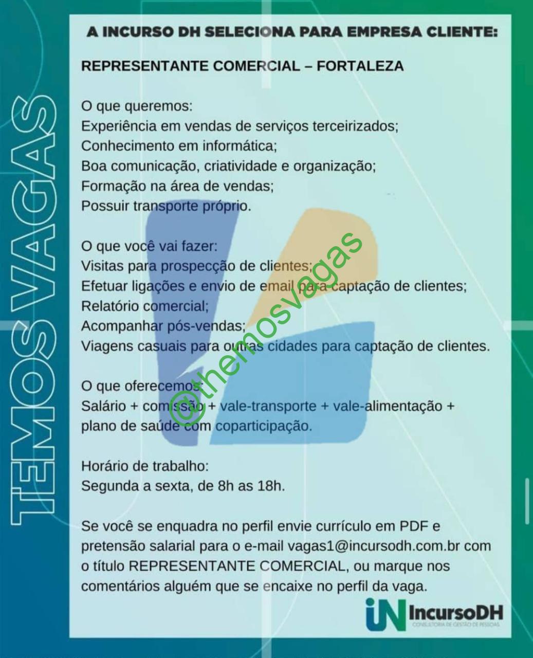 – Interessados(as) e que atendam ao perfil solicitado acima, devem enviar o currículo para o e-mail vagas1@incursodh.com.br , contendo no título/assunto “Representante Comercial – FOR“.