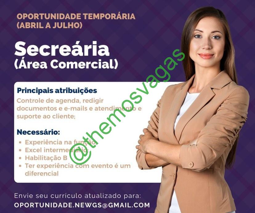 – Interessados(as) e que atendam ao perfil solicitado acima, devem enviar o currículo para o e-mail oportunidades.newgs@gmail.com contendo no título/assunto “Secretária – THE“.