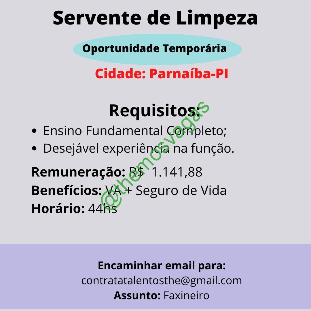 Servente de Limpeza | Parnaíba – PI | 01 vaga(s)