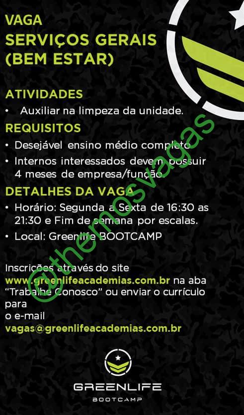 – Interessados(as) e que atendam ao perfil solicitado acima, devem enviar o currículo para o e-mail vagas@greenlifeacademias.com.br, contendo no título/assunto “Serviços Gerais – FOR