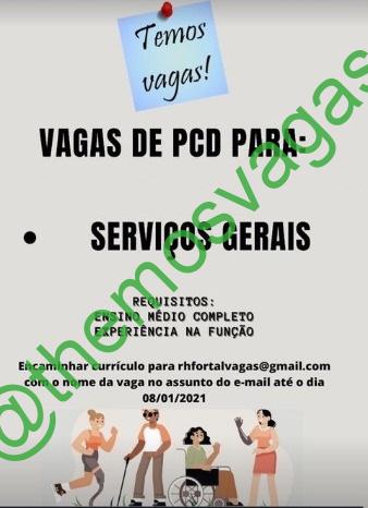 – Interessados(as) e que atendam ao perfil solicitado acima, devem enviar o currículo até 08/01/2021 para o e-mail rhfortalvagas@gmail.com , contendo no título/assunto “Serviços Gerais  – FOR