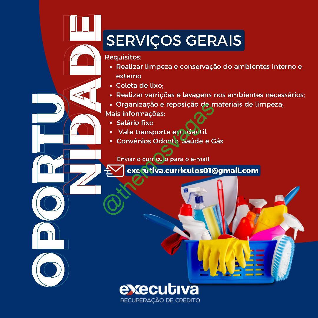 – Interessados(as) e que atendam ao perfil solicitado acima, devem enviar o currículo para o e-mail executiva.curriculos01@gmail.com contendo no título/assunto “Serviços Gerais – THE“.