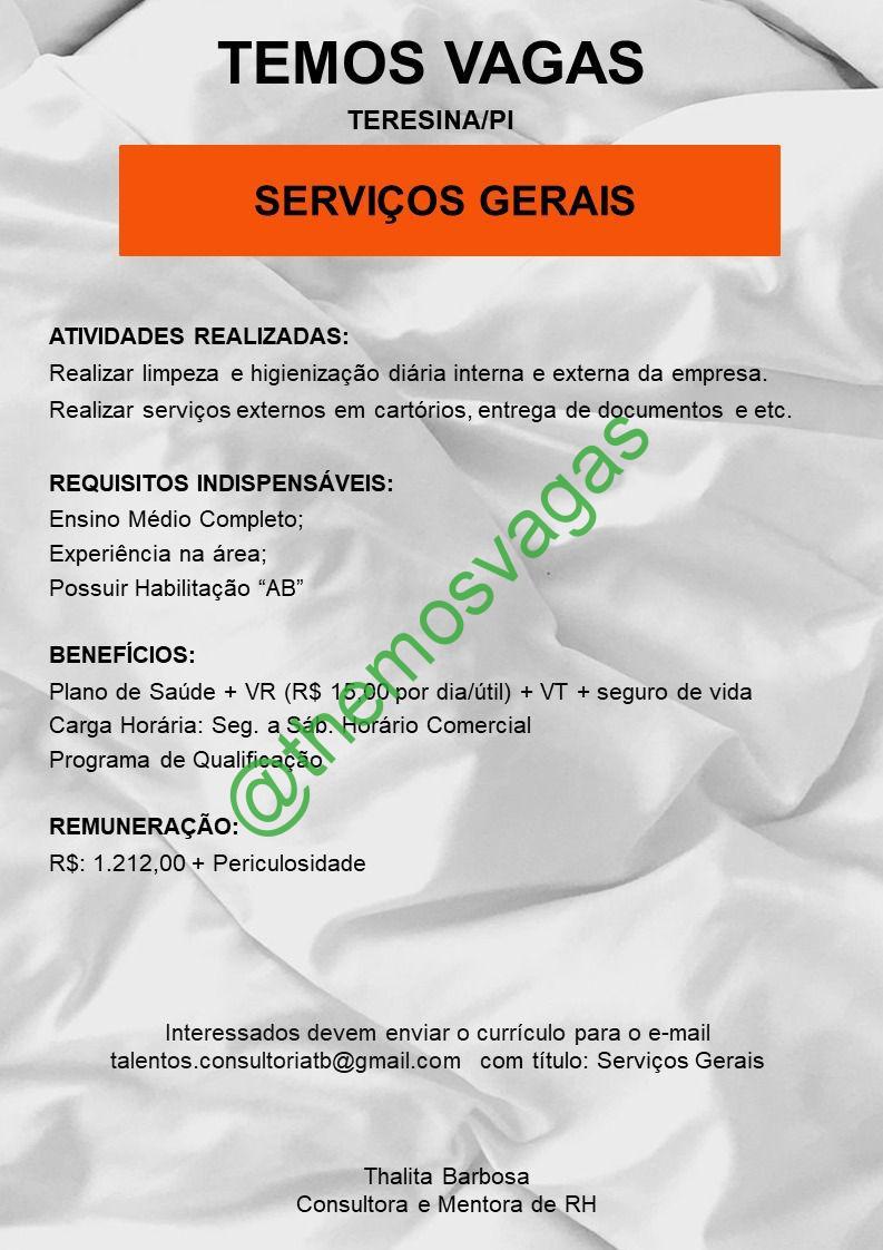Serviços Gerais | Teresina – PI | 01 vaga(s)