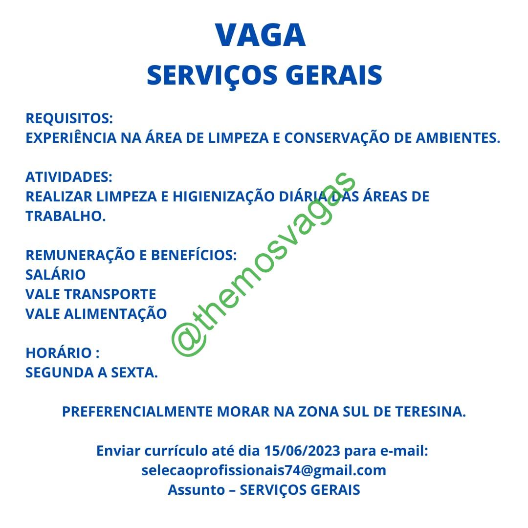 Serviços Gerais | Teresina – PI | 01 vaga(s)