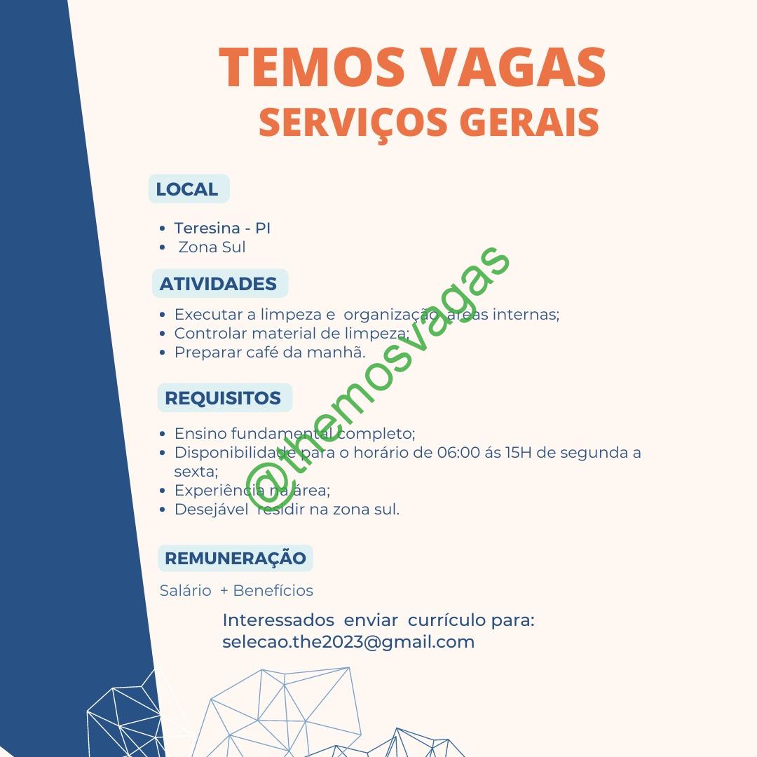 Serviços Gerais | Teresina – PI | 01 vaga(s)