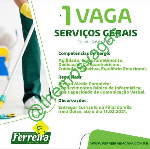 – Interessados(as) e que atendam ao perfil solicitado acima, devem entregaar o currículo até 15/03/2021  na filial do Ferreira Supermecado localizada no bairro Vila Irmã Dulce – Teresina/PI