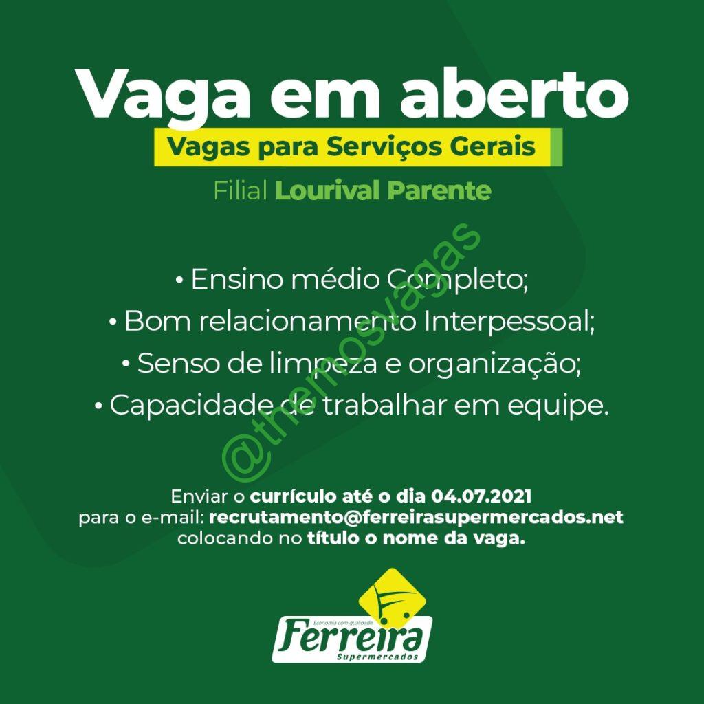 – Interessados(as) e que atendam ao perfil solicitado acima, devem enviar o currículo até 04/07/2021  para o e-mail recrutamento@ferreirasupermercados.net contendo no título/assunto “Serviços Gerais  THE