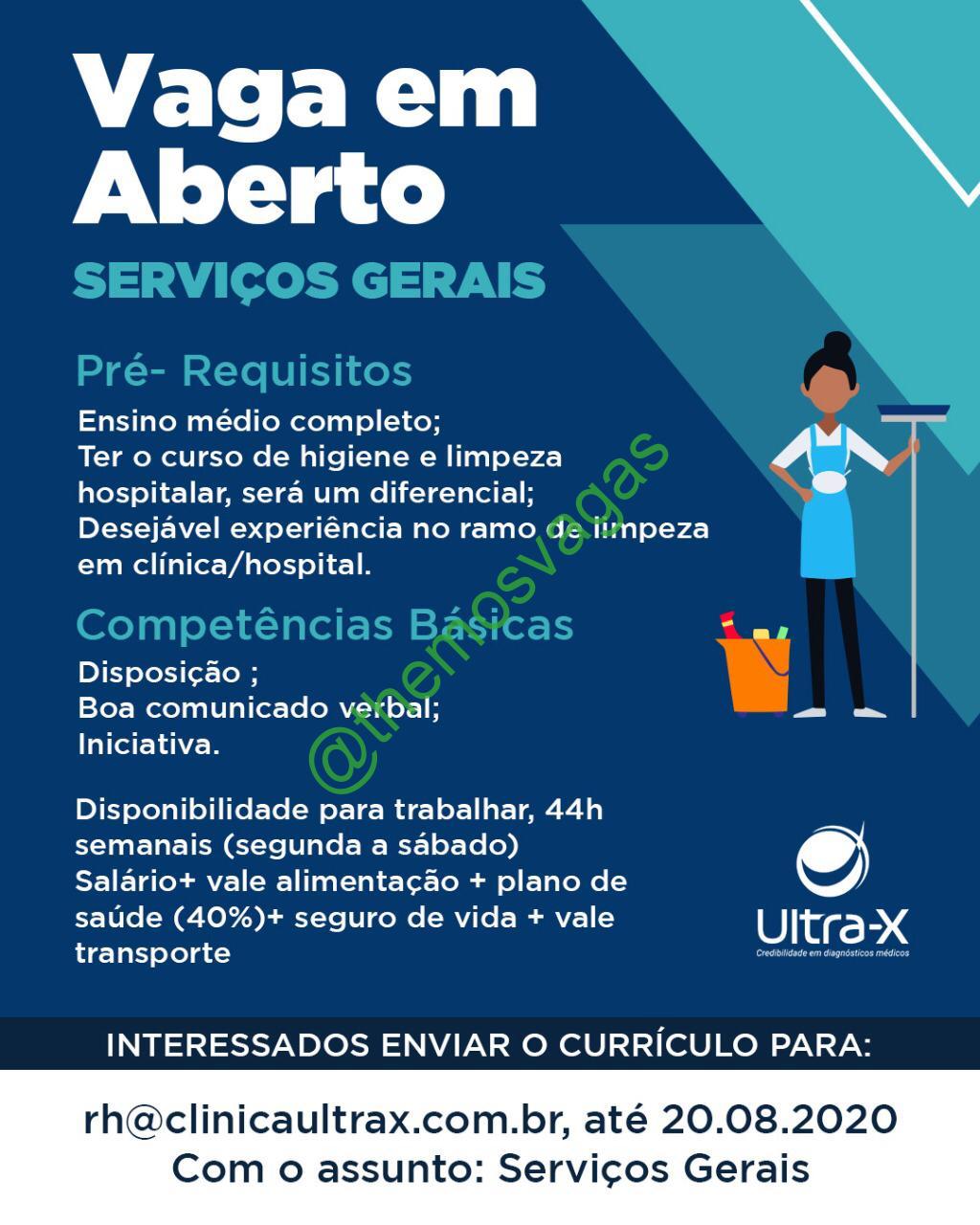 – Interessados(as) e que atendam ao perfil solicitado acima, devem enviar o currículo até 20/08/2020 para o e-mail rh@clinicaultrax.com.br contendo no título/assunto “Serviços Gerais THE