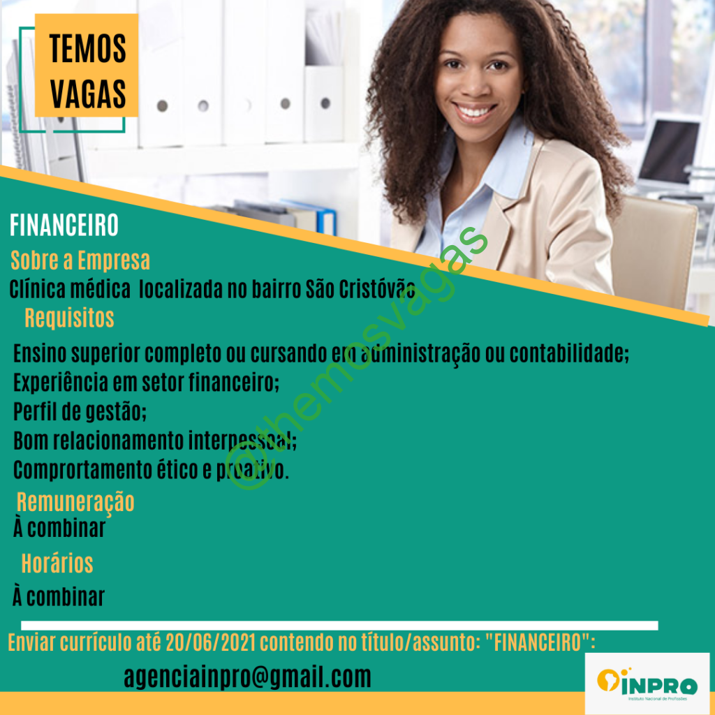 – Interessados(as) e que atendam ao perfil solicitado acima, devem enviar o currículo até 20/06/2021 para o e-mail agenciainpro@gmail.com contendo no título/assunto “Financeiro THE