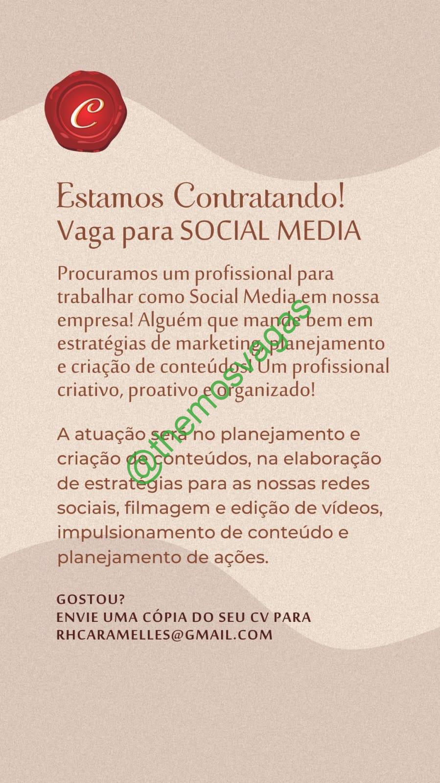 – Interessados(as) e que atendam ao perfil solicitado acima, devem enviar o currículo para o e-mail rhcaramelles@gmail.com contendo no título/assunto “Social Media – THE“.